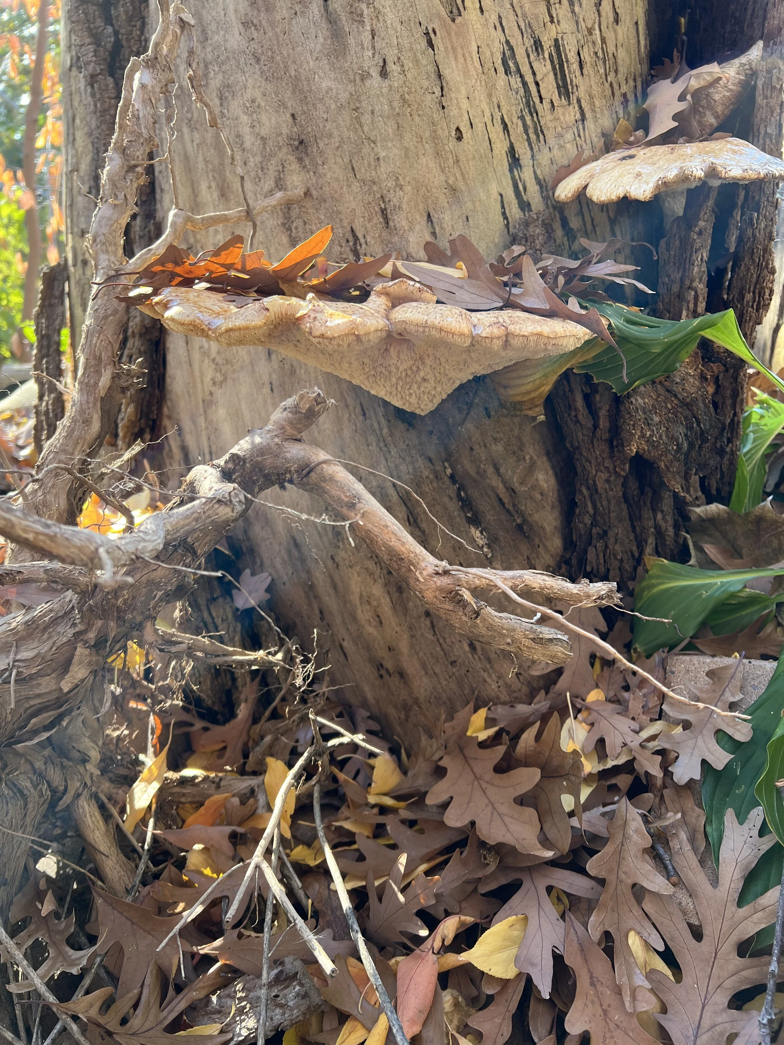 Leaf piles under shrubs or trees