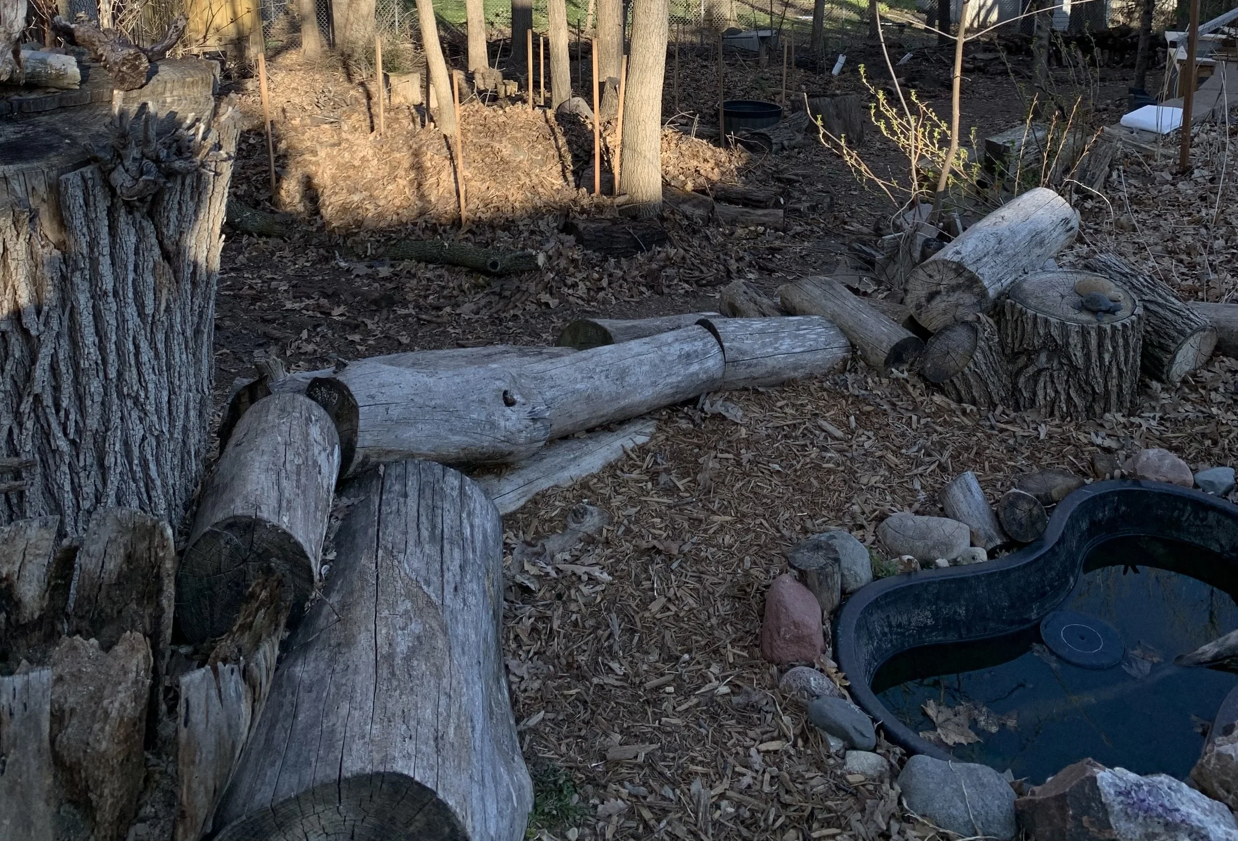 Mulched basins around shrubs and trees